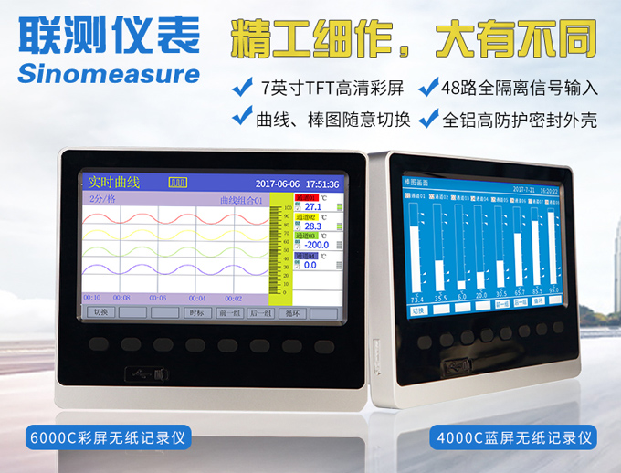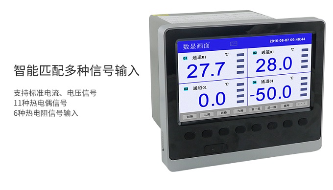 SIN-R6000C系列彩色無紙記錄儀48路萬能輸入(可組態選擇輸入:標準電壓、標準電流、熱電偶、熱電阻、頻率、毫伏等)。